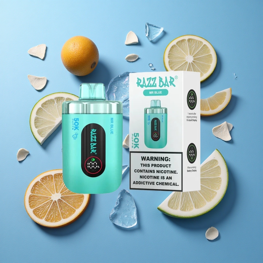 Razz Bar 50K Puffs Sigaretta elettronica usa e getta Mr Blu con Bobina Mesh 1.0 Ohm